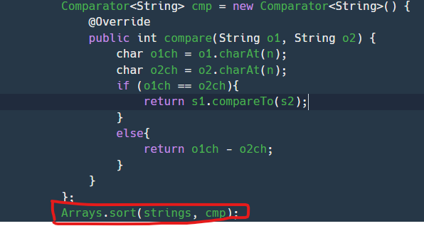이 문제에 정의된 방법 상으로 s1이 s2보다 좌측에 와야하면 음수, 우측에 와야하면 양수를 리턴하는 comparator를 전달하여 정렬하였다.