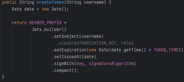 3.claim추가("Key", value) => 토큰이 디코딩 시 제공해야하는 정보를 담음(권한같은거)